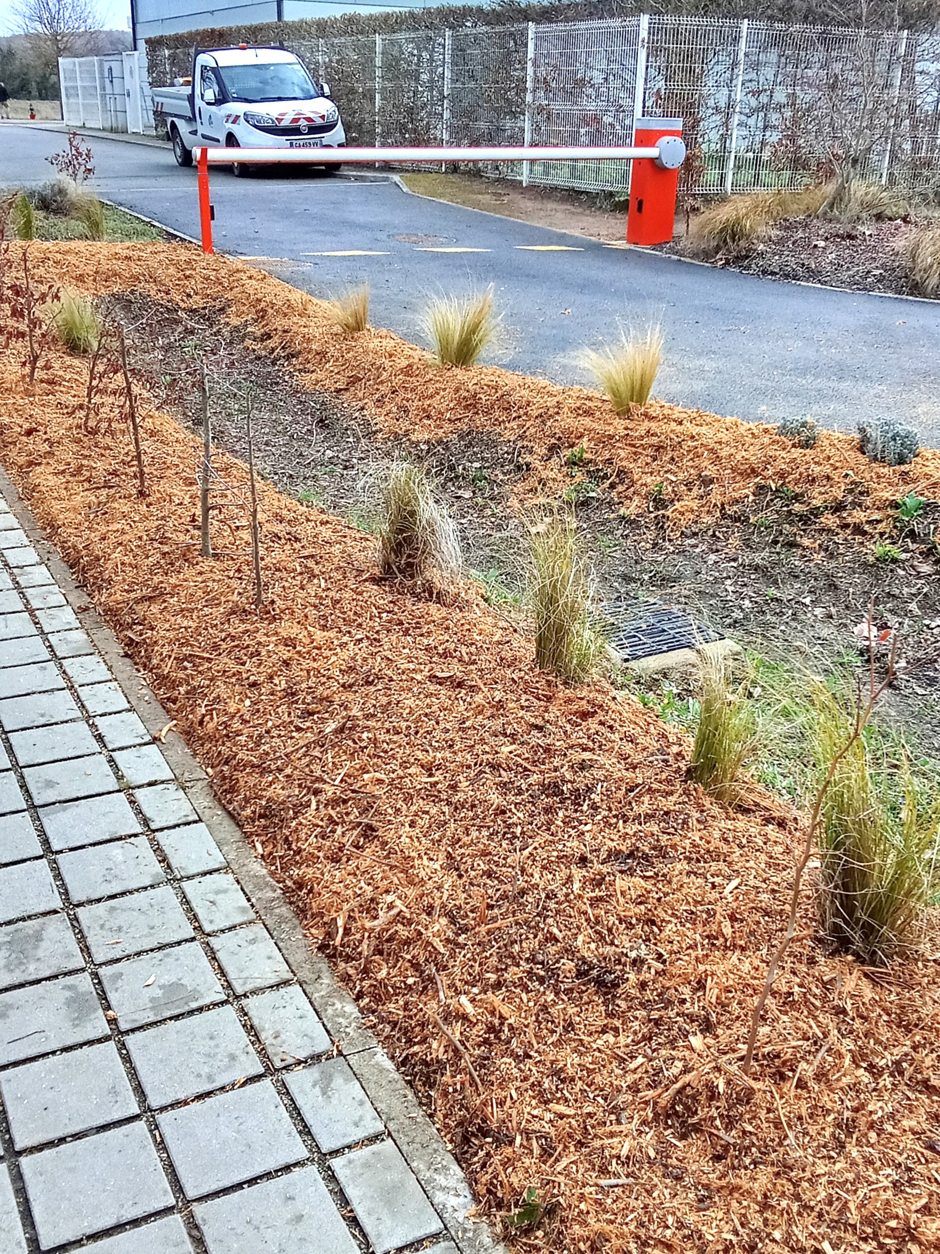 Nos voisins ont gentiment proposé aux communes alentours de leur fournir ce paillage ultra-local. Les agents du service technique de Saint-Marcel ont ainsi pu récupérer ce matériau précieux, qui vient déjà agrémenter les espaces verts de la Maison de santé.